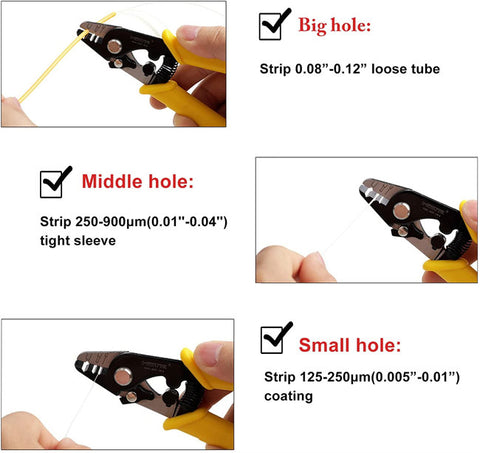 The middle hole can peel off the white soft rubber protective layer of the 250um-900um fiber core