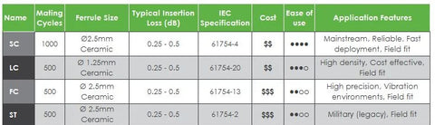Fiber optic cables utilize a number of different connectors that can be used to terminate the cable. While they do have some similarities, each has a different size and shape, so they are not interchangeable. When preparing any fiber-related equipment for installation, it is important to ensure that the cable is equipped with the right connector for the job.